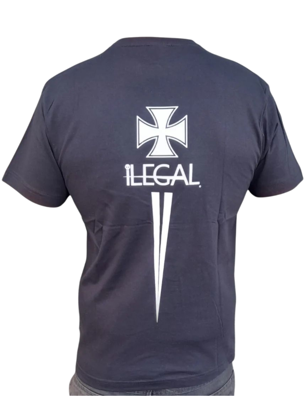Tshirt côr preta, marca frontal, logotípo na parte de traz.